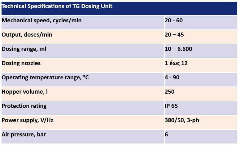 Depending on the machine configuration, they are available either with pneumatic operation or optimized servo drive units, enabling automatic or semi-automatic dosing (with optional foot pedal and manual dosing head). The simple operation via functional switches allows easy and precise adjustment of all key dosing parameters, according to the flow behavior of each product. In the case of frequent product changes or variations in density, parameters can be conveniently and quickly re-adjusted. The machines are also characterized by easy disassembly and cleaning.
