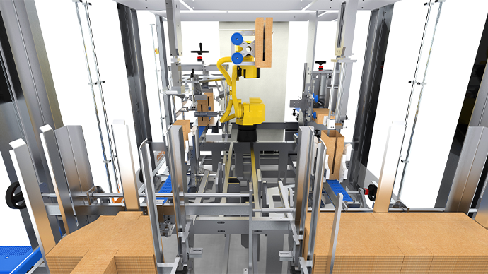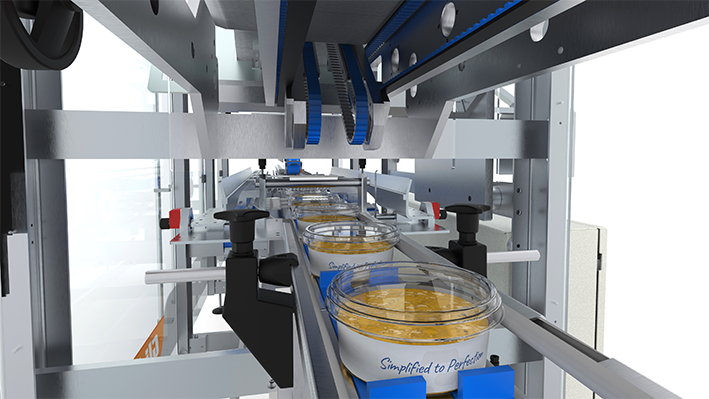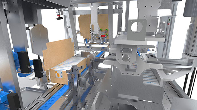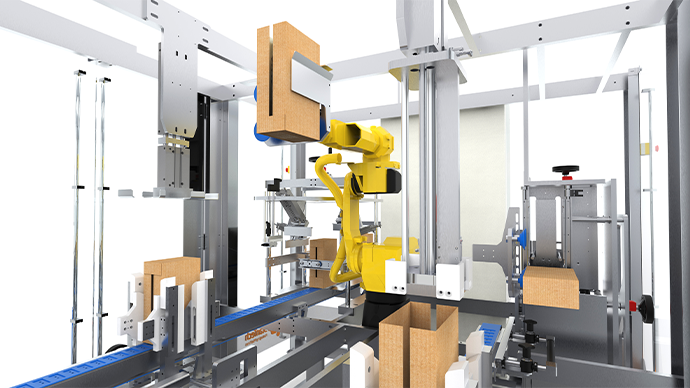 Οι επιλογές είναι ακόμα περισσότερες στο στάδιο της τοποθέτησης των προϊόντων μέσα στα χαρτοκιβώτια/χαρτόδισκους, όπου υπάρχει δυνατότητα πλευρικής φόρτωσης και ενσωμάτωσης πληθώρας ρομποτικών συστημάτων (Καρτεσιανά X-Z, αρθρωτά, Delta κλπ.) Προσθέτοντας μια μηχανή παλετοποίησης στην παραπάνω διαμόρφωση παρέχεται μια ολοκληρωμένη λύση συσκευασίας με την ελάχιστη δυνατή χρήση εργατικού δυναμικού και υψηλή απόδοση της επένδυσης (ROI).