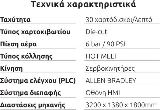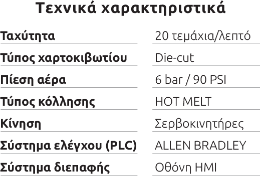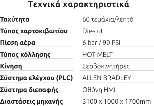➤Σύστημα σφράγισης χαρτοκιβωτίου με ταινία (προαιρετικά με κόλληση HOT MELT).
