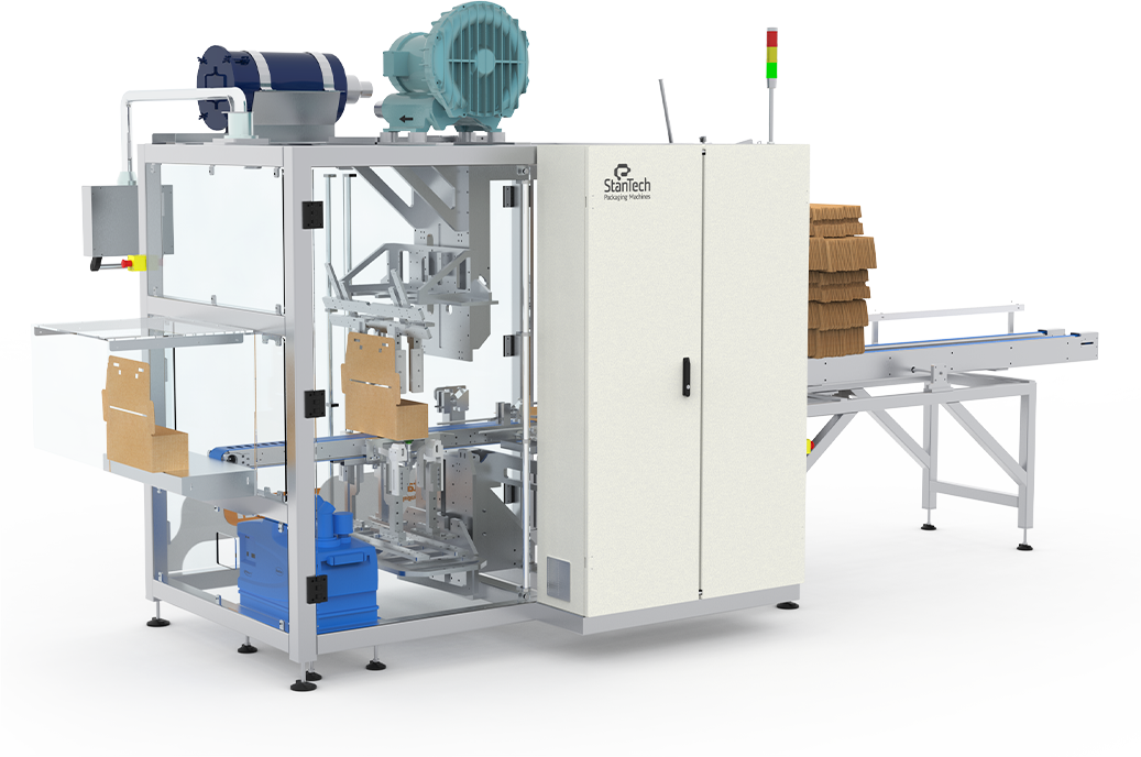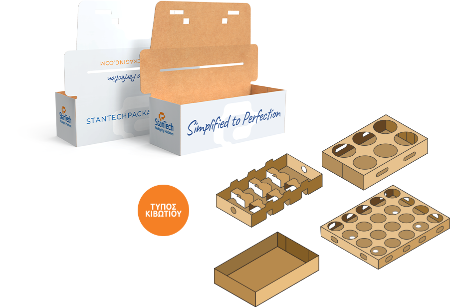 Η Stantech packaging σχεδιάζει και υλοποιεί ολοκληρωμένα συστήματα συσκευασίας τα οποία παρέχουν απόλυτη ευελιξία για τις ανάγκες σας. Αναλόγως εφαρμογής συνδυάζονται με μηχανές διαμόρφωσης χαρτοκιβωτίων (Case Erector) ή διαμόρφωσης χαρτόδισκων (Tray Former), wrap around boxes και διαφόρων τύπων display boxes.